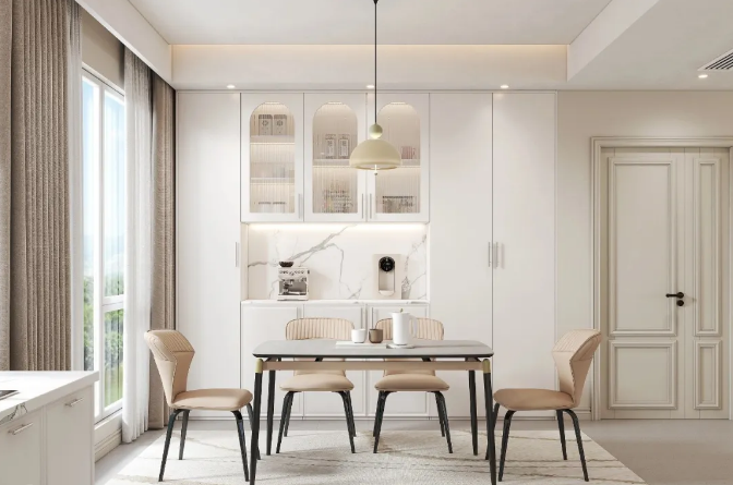 結(jié)合實(shí)用功能,搭配整屋風(fēng)格設(shè)計(jì)餐邊柜,裝飾性強(qiáng),不僅能營(yíng)造舒適和諧的用餐環(huán)境,還能充分體現(xiàn)空間格調(diào)與屋主品味。